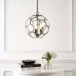 13.5″ 3-Light Bee Modern Farmhouse Iron/Glass LED Pendant Oil Rubbed Bronze/Clear – JONATHAN Y