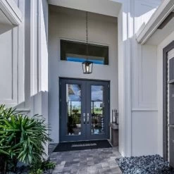 13″ Metal/Glass Square Cage Modern Outdoor Pendant Light Black – LNC