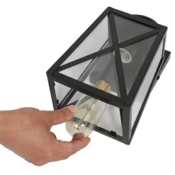 Brighten up your house’s exterior and interior with this 2-pack classic outdoor wall light by LNC. This sandy black modern outdoor wall lantern light includes two pieces of light fixtures. It takes a trapezoid-shaped metal structure as the main body and matchicg the clear seeded glass shade, forming an elegant and harmonious look with a metal structure as a whole. Made from iron and seeded glass in a lovely weather-resistant bronze finish. With its globe design and understated silhouette, Great for modern, farmhouse, rustic, traditonal or transitional style decor.