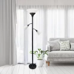 Light up your bedroom, office, foyer or living room with this elegant yet affordable 3 light floor lamp. It features a stunning restoration bronze finish and marbleized white shades with spiraled cut glass to complete the timeless look. Item is also available in a restoration bronze/champagne shade finish as well as additional metal finishes to compliment any room.