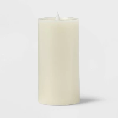 Create a warm and welcoming glow in your home or set up an elegant candlelit dinner with this Pillar Candle from Threshold™. Made with unscented wax, this LED pillar candle has a realistic flame effect to help create just the right mood from a tabletop to every nook and cranny of the home. In a cream color, this unscented wax candle suits a variety of decor styles.