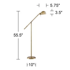 360 Lighting Traditional Pharmacy Floor Lamp With USB Charging Port 55″ Tall Brass Dome Shade Adjustable Arm For Living Room Reading