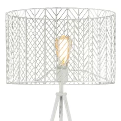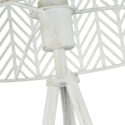 Style yourself a chic and cozy reading corner or just enhance your home’s lighting with this 61″ Ingrid White Cage-Shade Metal Tripod Floor Lamp from River of Goods. Featuring an all-metal construction in a crisp, matte white finish for a clean look you’ll love, this freestanding floor lamp is a great addition to your living room, bedroom, entryway or home office. Thin tripod legs offer an eye-catching look that’s perfectly designed for placing in a corner, while the open-style cage-shaped round shade is covered in allover cutouts to let a 60-watt E26 or equivalent LED bulb (not included) shine through. Plus, this decorative floor lamp features a 90-inch power cord to provide ample reach to a wall outlet and give you plenty of placement options.