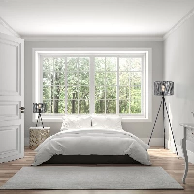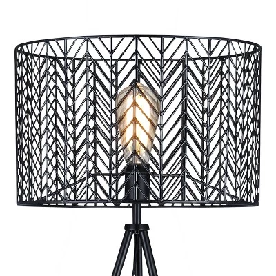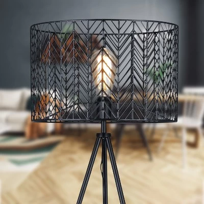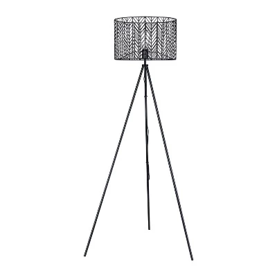 Elevate your living room, entryway or bedroom decor while adding convenient lighting with the 61″ Ingrid Black Cage-Shade Metal Tripod Floor Lamp from River of Goods. Featuring an all-metal construction with a slender tripod-style base and industrial-inspired round cage shade, this matte black floor lamp complements a wide variety of color palettes and decor styles to blend in beautifully in your home. A 90-inch power cord provides ample reach to a wall outlet, and the cutout-covered metal shade lets one 60-watt E26 or equivalent LED bulb (not included) easily shine through. Place it near a favorite reading chair or corner of your sofa, or place it in your entryway to create warm, welcoming ambiance as guests enter your home.