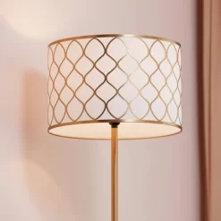 The Novogratz x Globe Kinsley Floor Lamp offers grandmillennial styling for any room. The matte brass finish and metal mesh overlay that sits on a cotton shade combine to add a vintage design element to any space while the overall shape of the floor lamp is both modern and functional. This 65-inch floor lamp brings a retro focal point to your home and is ideal for the living room, bedroom or office for a glamorous style. With a rotary on/off switch on the socket for easy access and a five-foot black cord, you can place this floor lamp anywhere in your room without worrying about finding a spot near the wall outlet. The Novogratz and Globe Electric – stylish, decorative lighting made easy.