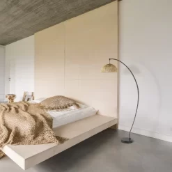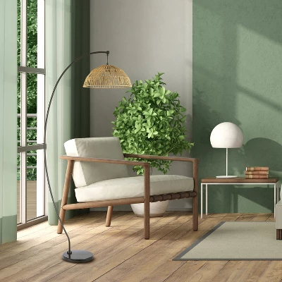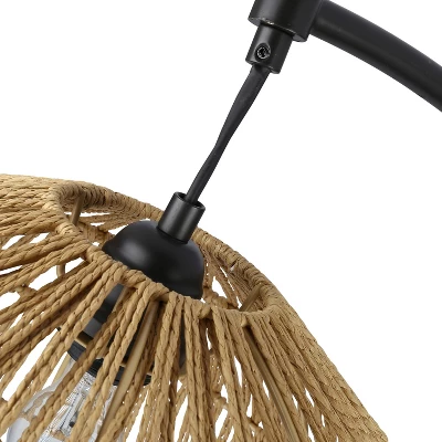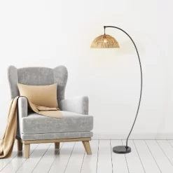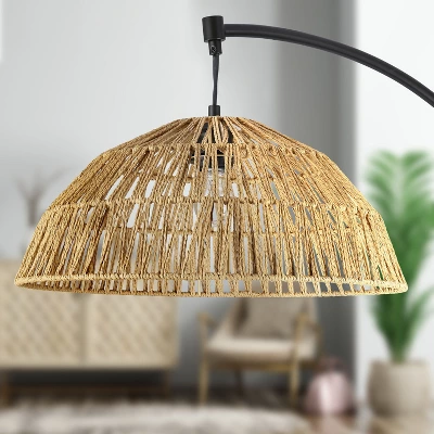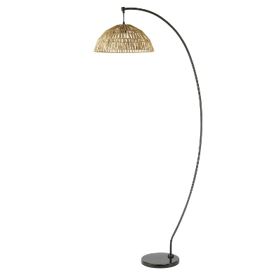 77″ Metal And Rattan Bowl Boho Floor Lamp Black – River Of Goods