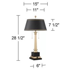 Add traditional style to a study or work desk with this handsome lamp design from the Barnes and Ivy brand. The lamp features a warm brass finish with a black marble accent and a designer shade. Handy twin pull chains allow you to easily set the lighting level in a room. A built-in USB port in the base lets you charge smart phones and more. Can also be used on a hallway table, or as a table or bedside lamp.