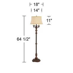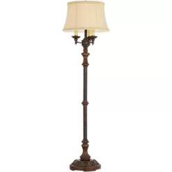 - A traditional floor lamp design with candelabra arms under top shade, from the Barnes and Ivy brand.