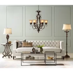Create a new look in your home with this handsome, traditional style floor lamp. The design features one center light surrounded by three additional wattage bulbs. Decorative base is in an Italian bronze finish with gold highlights. A bell-shaped shade with trim sits on top.