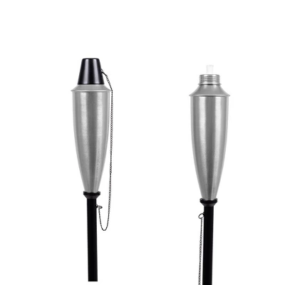 - WEATHER RESISTANT: torches are electroplated with satin silver for extra protection against wear, corrosion and weather. Our torches will last longer than typical bamboo tiki torches. Each torch features a wick cover/snuffer that protects the wick from the elements