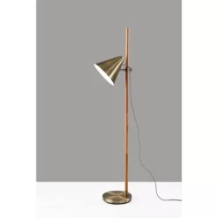 Bryn Floor Lamp Natural Rubberwood Antique Brass – Adesso