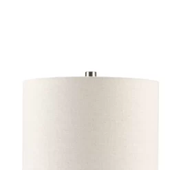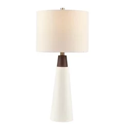 The INK+IVY Tristan Triangular Ceramic and Wood Table Lamp provides a refined addition to your home decor. Showcasing a two-tone conical stand, this table lamp is made from white ceramic with a wood accent to create a unique mid-century modern design. The drum shade comes in a cream color to complement the look of the base, while also providing a soft filter for the light. Illuminate your living room and elevate your space with a sophisticated style of this ceramic table lamp. One Type A light bulb is needed and included.