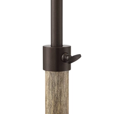 - Bronze and faux wood grain finishes. Metal construction. 8-foot long brown cord.