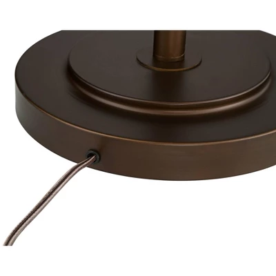 Another impressive option from Franklin Iron Works®, this torchiere floor lamp is a lovely choice for a bedroom or living area. The lamp features a stacked base and slim column in an oil-rubbed bronze finish and a beautiful glass shade. Add a vintage Edison bulb for warm ambience.