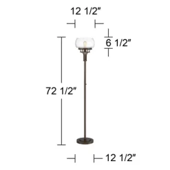 - 72 1/2″ high overall. Round base is 12 1/2″ wide x 2″ high. Glass is 12 1/2″ wide x 6 1/2″ high. 39″ from floor to switch. Weighs 26 lbs.