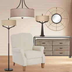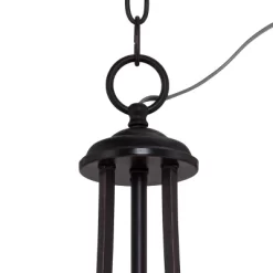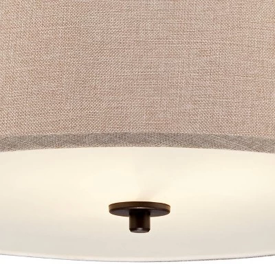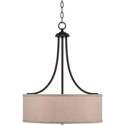 Franklin Iron Works Oil Rubbed Bronze Pendant Chandelier 19 1/2″ Wide Farmhouse Rustic Oatmeal Linen Drum Shade Fixture For Dining Room Kitchen Island