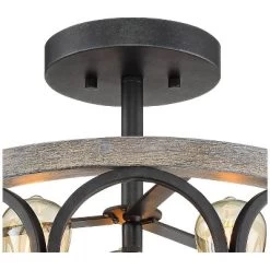 Franklin Iron Works Salima Rustic Farmhouse Ceiling Light Semi Flush Mount 16″ Wide Black Gray Wood 3-Light For Bedroom Kitchen Living Room Hallway