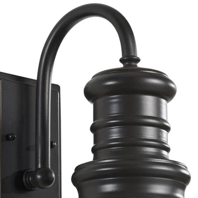 A stunning restoration bronze finish delivers ultimate luxury that embellishes the nautical village theme of this LED outdoor wall light. From the Redding Station collection by Generation Lighting, this light borrows from farmhouse lore to create a period influence and romantic style. This ornate aluminum light is energy-efficient, delivering an average life span of 50,000 hours with three hours of use per day.