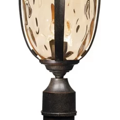 Brighten up your walkways, pathways, and driveways with this outdoor post light from the Bellagio collection. This traditional post mount light comes in a handsome bronze finish over sturdy die-cast metal and has champagne hammered decorative glass for an antique look. Use it to add a warm, welcoming glow to your home. Please note that this is a post light only – the pole is not included. This fixture may be pier mounted with an adapter that is sold separately.