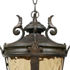 - Scrolls and acanthus leaf detailing. Textured black finish. Sturdy die-cast metal construction. Clear hammered glass.