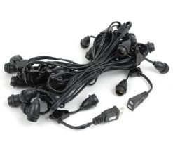 - Each string has 25 sockets spaced 12″ apart and has a length of 25′