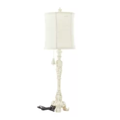 Display this accent lamp on your entryway table, living room mantel, or anywhere needing a touch of vintage pastoral charm This eye catching lamp makes a playful addition to your surface space and beautifully illuminate its surrounding area Make a statement with this unique lamp on mantle, console table or in any living space. This item comes shipped in one carton. This table lamp has a 64″ cord length. Suitable for indoor use. Accent lamp with a convenient pull switch cord for easy on/off. Made in China. Coastal