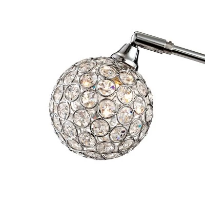 - Chrome finish pole and arched arms. Black marble base. Crystal and wire ball shades.