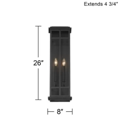 Windowpane-inspired grid lines add detail to the modern simplicity of this contemporary two-light outdoor wall light. From Possini Euro Design®, it offers bright, beautiful illumination on a patio or porch, perfect for enjoying a warm summer evening. Its frame receives a cool black finish while clear panels protect the light cluster within.