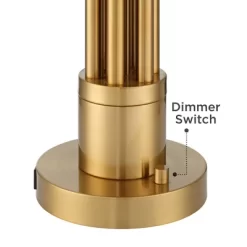 From Possini Euro Design®, this exceptional metal table lamp displays a warm antique brass finish that brings an inviting presence. It also features a frosted glass shade and dual USB ports for charging smart phones and other electronics. Evoking an elevated industrial motif, the lamp features a round base and six-piece metal tube body. A handy dimmer completes this exceptional desk lamp design.