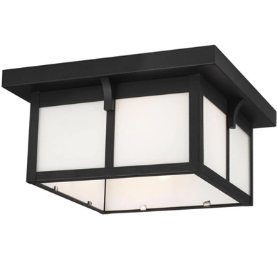 The Sea Gull Lighting Tomek two light outdoor ceiling fixture in black enhances the beauty of your property, makes your home safer and more secure, and increases the number of pleasurable hours you spend outdoors. Tomek outdoor offers architectural craftsman’s details with a minimalist approach.