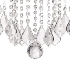 - Clear crystal elements with a dark bronze finish frame and vintage-style scroll arms. Metal construction.