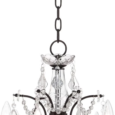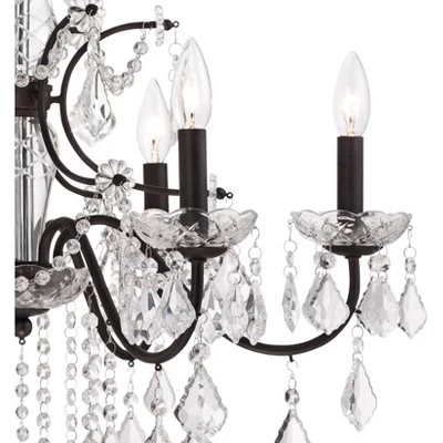 Add glamour to your home with this radiant chandelier. From the Vienna Full Spectrumâ„¢ brand of chandelier lighting, the vintage-look traditional design provides sparkle for dining rooms and entry areas. It comes in a handsome dark bronze finish scroll arm frame and is adorned with clear crystal strands and droplets. Six candelabra style lights are arranged on a single tier around the clear glass center column.