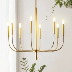 27.25″ 8-Light Amoros Modern Mid-Century Iron LED Chandelier Gold Painting – JONATHAN Y
