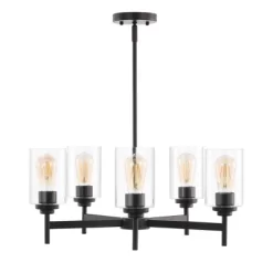24″ LED 5-Light Orpheus Industrial Iron Cylinder Chandelier Oil Rubbed Bronze/Clear – JONATHAN Y